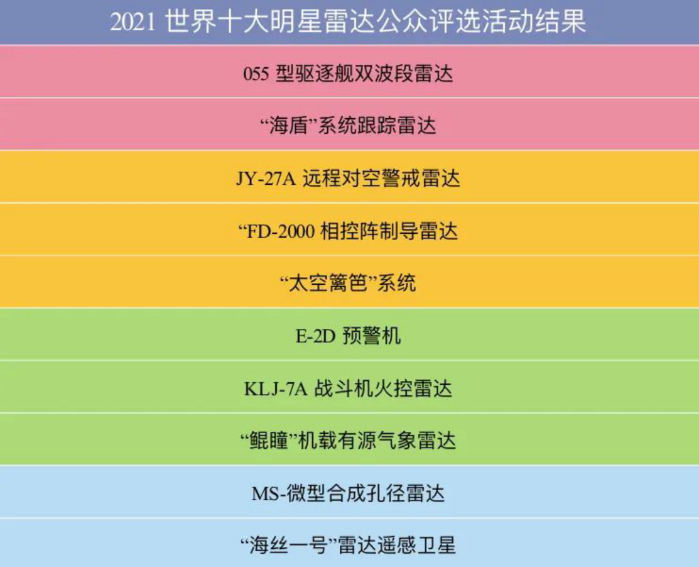 (图为:第2届“世界十大明星雷达”公众评选活动结果,以上排名根据海、陆、空、天领域展示,不分先后)