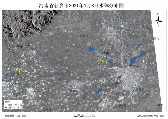 河南省新乡市局部区域SAR卫星洪灾监测