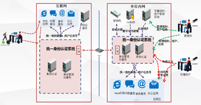 · 满足单位内组织架构、用户统一身份管理、同一单位不同网络域统一身份管理与身份认证、行业上下级单位统一身份管理与身份认证;