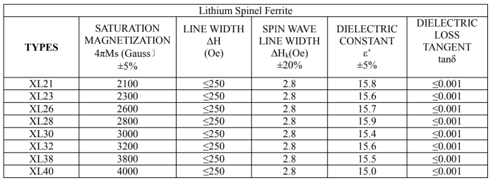2. 用途:低场低损耗同轴、带线隔离器、环行器