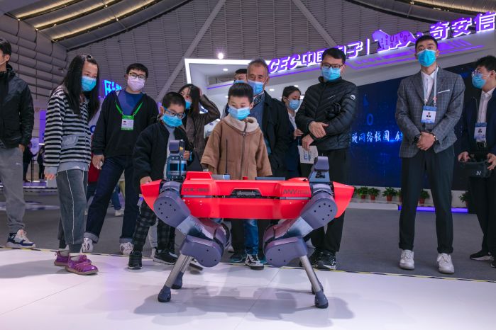 11月23日,世界互联网大会•互联网发展论坛正式开幕。在“互联网之光”博览会中国电科展台,一只会跑会跳舞还会做俯卧撑的中国ANYmal四足机器人吸引了各参展嘉宾的强势关注。
