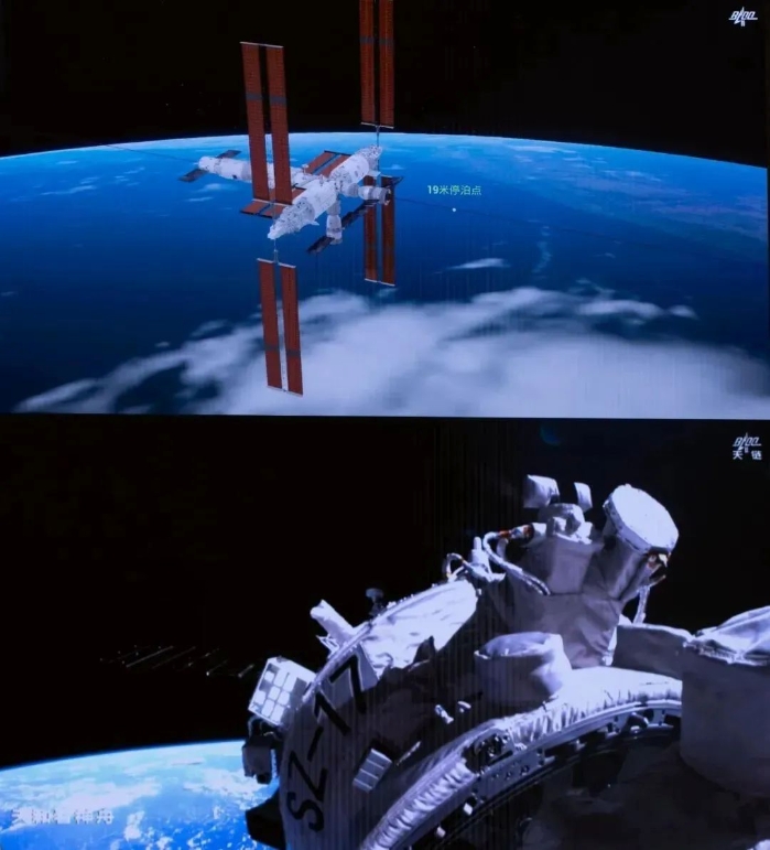 10月26日,在交会对接激光雷达引导下,神舟十七号载人飞船和空间站天和核心舱前向端口成功对接。新华社记者 金立旺 摄