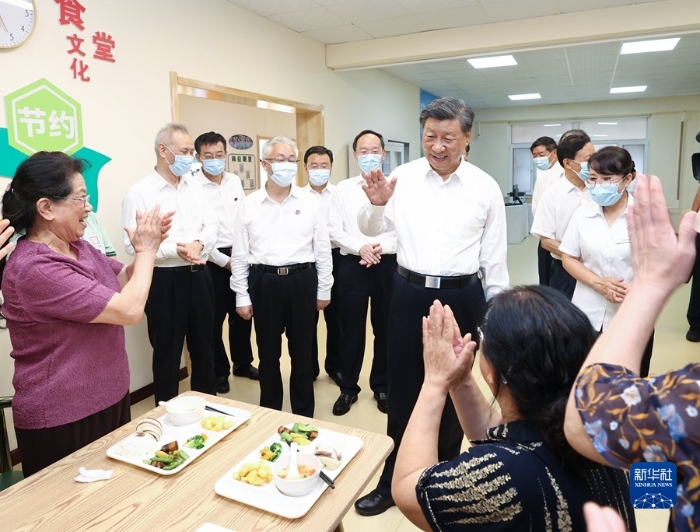 8月16日至17日,中共中央总书记、国家主席、中央军委主席习近平在辽宁考察。这是17日下午,习近平在沈阳市皇姑区三台子街道牡丹社区老年餐厅,同正在用餐的老人们亲切交流。 新华社记者 鞠鹏 摄