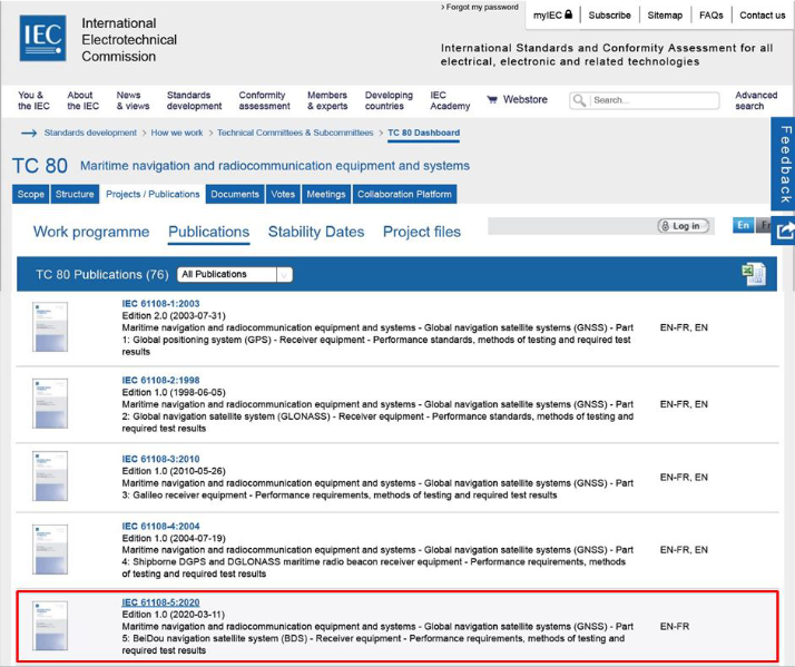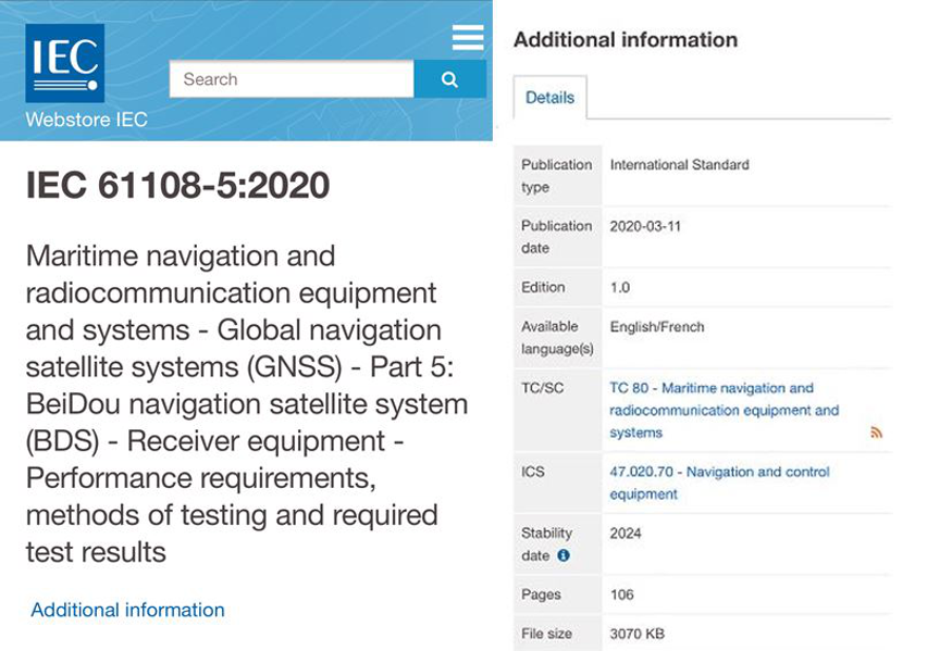 在中国卫星导航系统管理办公室和中国电子科技集团有限公司的组织推动下,在国家标准化管理委员会、工业和信息化部电子信息司、中华人民共和国海事局、中国卫星导航工程中心和西安市市场监管局标准化处等大力支持下,中国电科西北子集团作为北斗接收设备IEC标准的召集单位,主导制定的IEC 61108-5:2020《海上导航与无线电通信设备及系统 全球导航卫星系统(GNSS) 第5部分:北斗卫星导航(BDS)-接收设备-性能要求、测试方法与要求的测试结果》是全球卫星导航海用产品制造商设计、生产和测试的指导性标准,为各国船级社对北斗设备上船应用许可——“型式认可”提供了依据,为卫星导航接收设备设计和测试提供参考,对后续北斗差分、北斗星基增强、北斗国际搜救和北斗短报文IEC国际标准制定具有良好的示范带动作用。为中国电科进一步践行北斗国家战略,推动北斗全面进入船载综合导航系统、自动识别系统、全球海上遇险与安全系统应急示位标、电子海图和信息系统等相关IEC标准,持续推进北斗在国际海事领域的广泛应用具有重大里程碑意义。